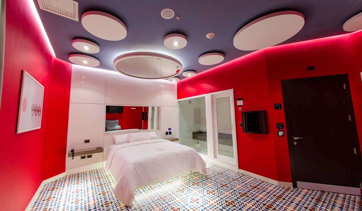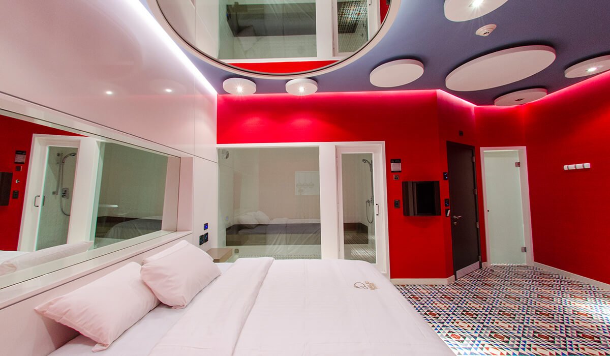 Sus colores vibrantes las distinguen de cualquier suite. A diferencia de otras, su atractivo está en su sala de vapor con cromoterapia, la cual está estratégicamente ubicada con un amplio vidrio central que deja una vista perfecta de la cama.